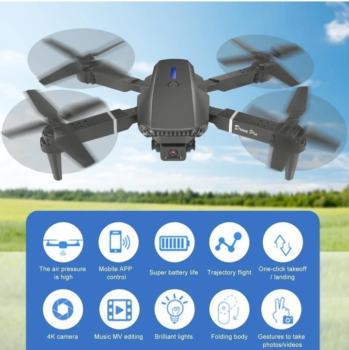 Easy to use just press a button to take off, land and return. Using the headless mode, you can fly to your destination more easily without having to adjust the position of the aircraft before flying. The function of the maintenance mode of the colatitude can provide a stable flight. Light the four -rotor fuselage is made of high resistance techno polymers, light and durable, with folding arms, compact and easy to transport. Designated flight ballistic flight, trace the flight route on the screen, the drone will automatically fly in the designated direction, it has 3 levels of switching speed switching, it can make the flight more interesting.