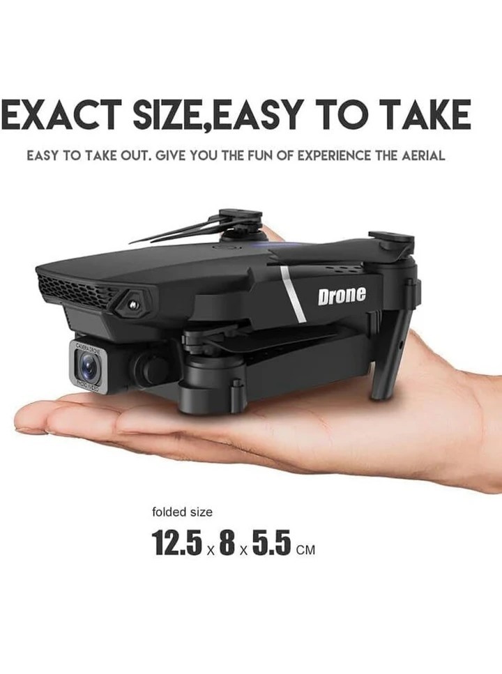 Motion Control, Trajectory Flight, Spin Fine Tuning, Fixed Height Control, Image Flipping, Auto Hover, Add Music, Speed Mode, Emergency Stop, HD Camera, Foldable Wings, Click Photos & Record Videos, 360 Flip Stunt, Headless Mode, One Key Take off & Landing, Direction Control, Fine Tuning, Zoom, Gravity Indication etc Battery Information: 2 x 3.7V 1800mAh Li-Po Battery (Included); Remote Battery: 3x1.5VAA (Not Included) Camera: Yes, Weight: 380gm, Flying Height: 80-85 mtrs, Flying Time: 9-10 min, Charging Time: 40-45 min Box Contains: 1 Drone, 1 Remote Controller, 2 Drone Battery, Extra Wings & Guard, User Manual and Charging Cable Best Birthday Gift for Kids & Adults CARE INSTRUCTION: Charge at least 40 min Before 1st Use